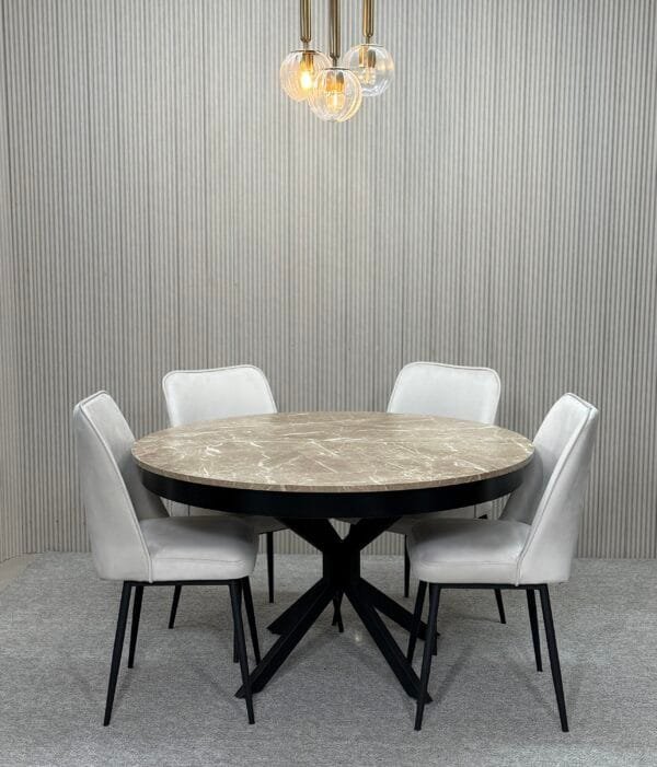 הפינת אוכל מגיעה כולל 4 כסאות דגם סטיילי הקלאסי המתאים לכל שולחן מרופד בבד קטיפתי ביבי פיס איכותי ורחיץ , כולל שילדת מתכת חזקה , קיים ב 4 גוונים לבחירה